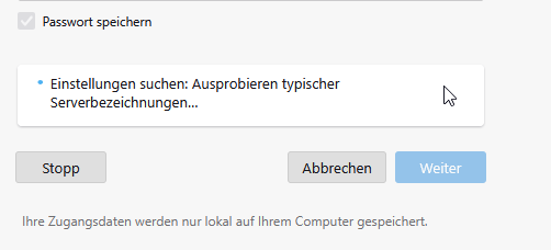 Jetzt kurz Geduld bis Thunderbird die Daten gefunden hat